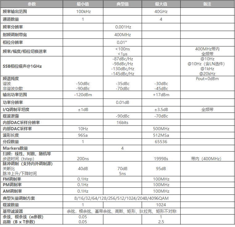 AnaPico的APVSG矢量信號發生器主要指標如下:
