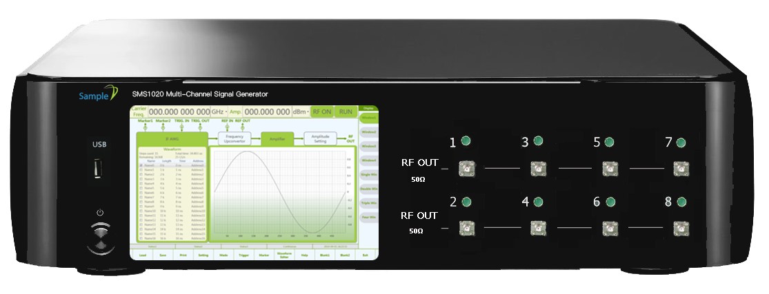 SMS1020系列信號源是采用盛鉑科技獨創的QpaSync多通道快速相位校準技術實現的真正意義上的多通道相參輸出信號源,單臺設備最多可提供高達8個獨立可設置的輸出通道,每個通道的相位獨立連續可調,并可在長達9小時內保持通道間的相位漂移小于2°的相對穩定度。
