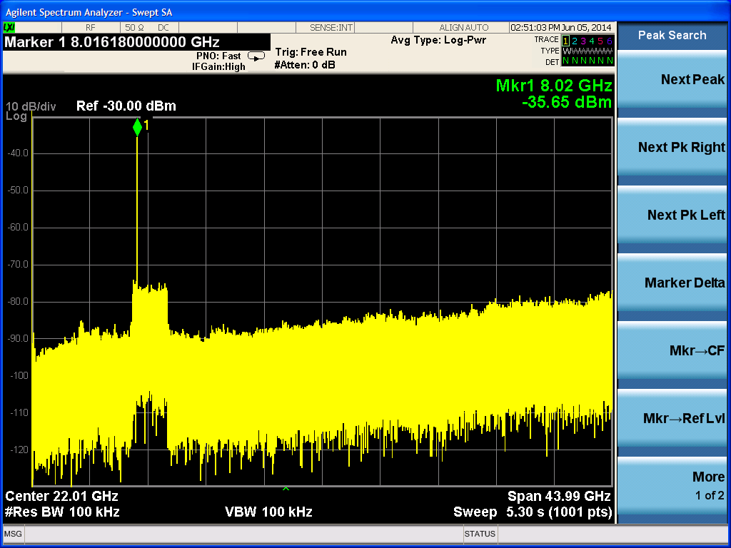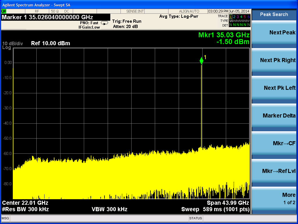 圖1 35GHz載波輸出信號平坦度(<3dB)